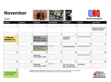 “Our QNQ Marching Band & Colorguard had a competitive full sweep at the 70th Annual Quincy Christmas Parade. This year brought many awards, best overall music, best overall Colorguard, and best overall band with a historic QNQ score of 94.2! This is the third year in a row that our QNQ Band & Colorguard has won best overall band at the Quincy Christmas Parade. Congratulations QNQ, what an amazing way to wrap up your 2023 marching band season!”